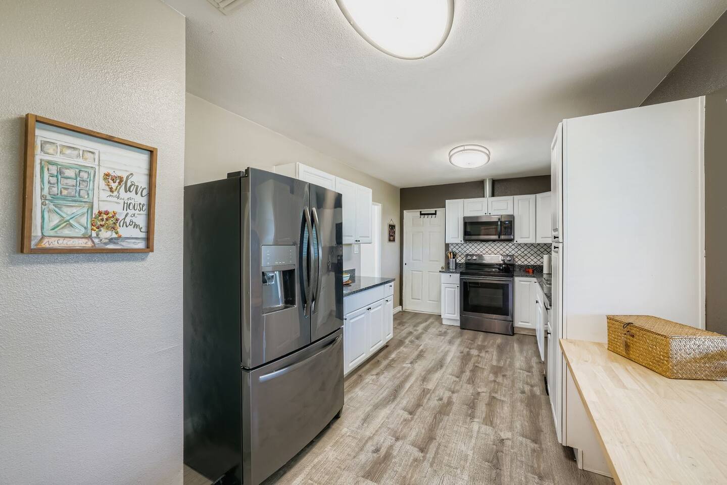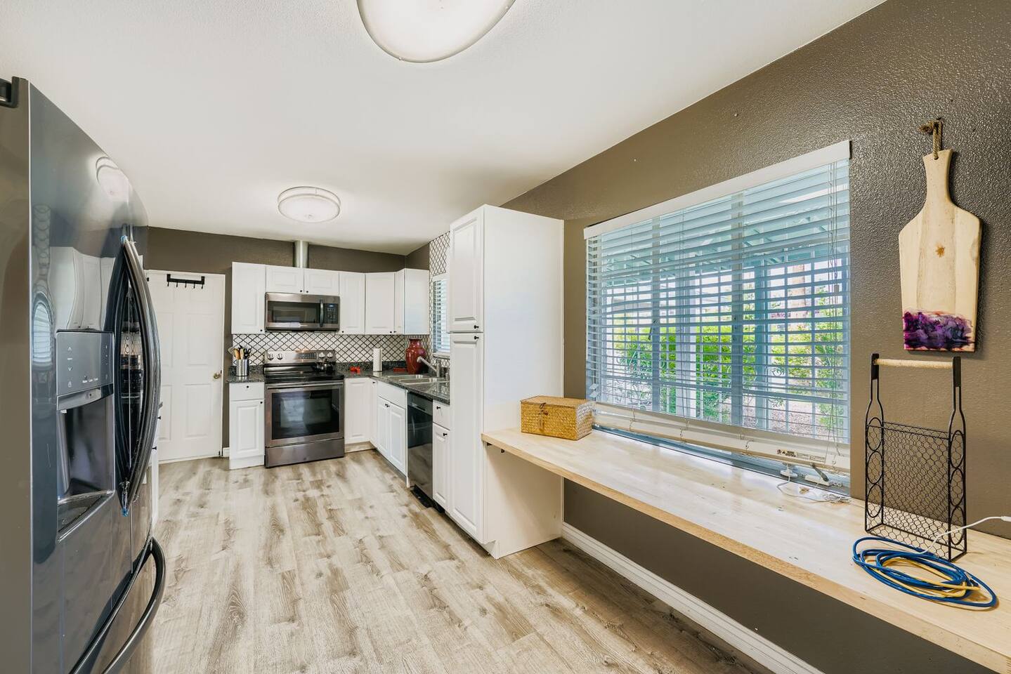 ☛ 1,759 square feet ☛ 4 Bedrooms ☛ 2 bathrooms ☛ Single story home ☛ Renovated and updated with classic look ☛ 30 Nights or Longer Bookings ☛ Newly updated kitchen with stainless steel appliances and beautiful countertops ☛ Smart TVs and high-speed WiFi ✹ Fully fenced backyard with a covered patio for outdoor relaxation ✹ In-unit washer and dryer ✹ Extended carport and 1-car garage for convenient parking ✹ Located in a quiet neighborhood near Downtown and the Arts District