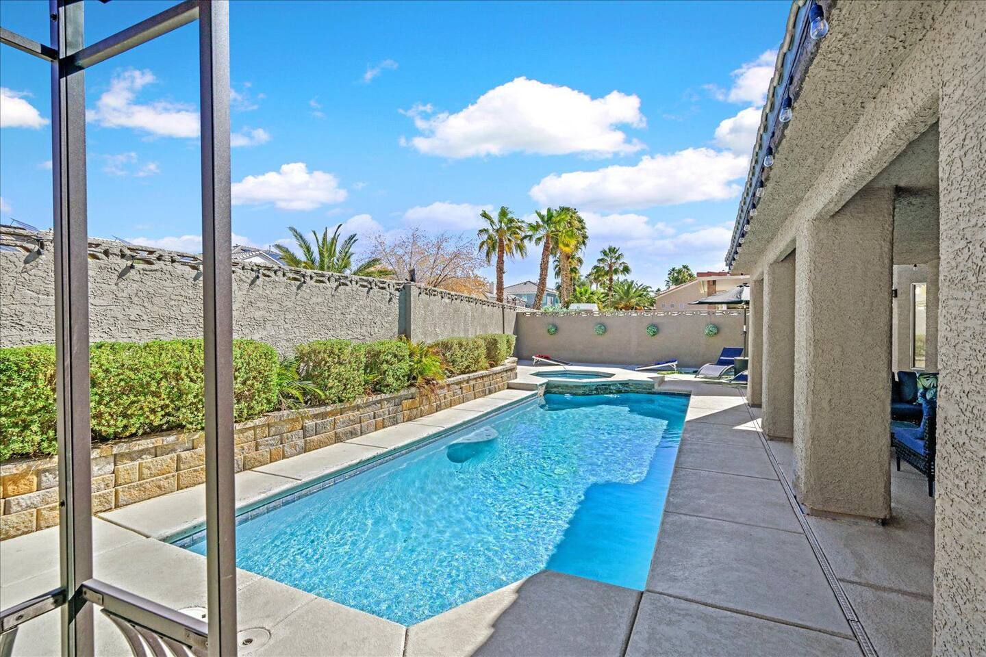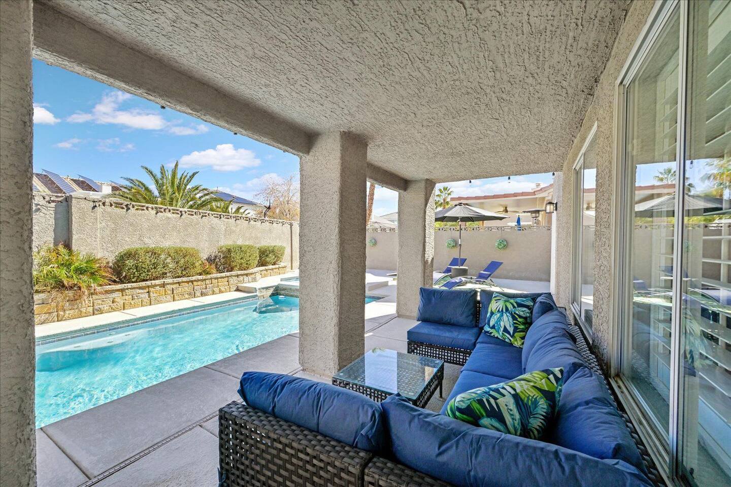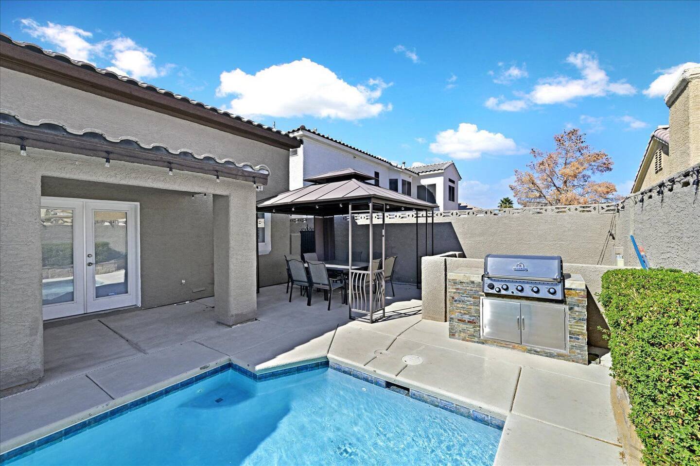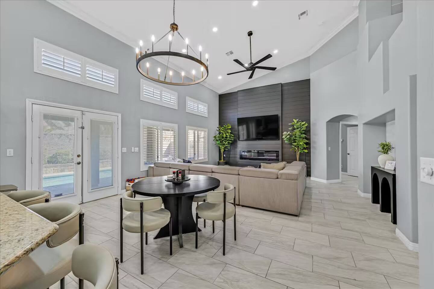 Be wowed by the vaulted ceilings when you enter this gorgeous home. This amazing 2 story home is turn-key ready and is updated with a modern look. 3 bedrooms 3 baths 3 car garage with lots of living spaces. The primary suite downstairs also with vaulted ceilings, a french door entrance, and glass French doors to the backyard. Beautiful kitchen open concept outdoor grill and a sparkling pool and spa to enjoy and relax.