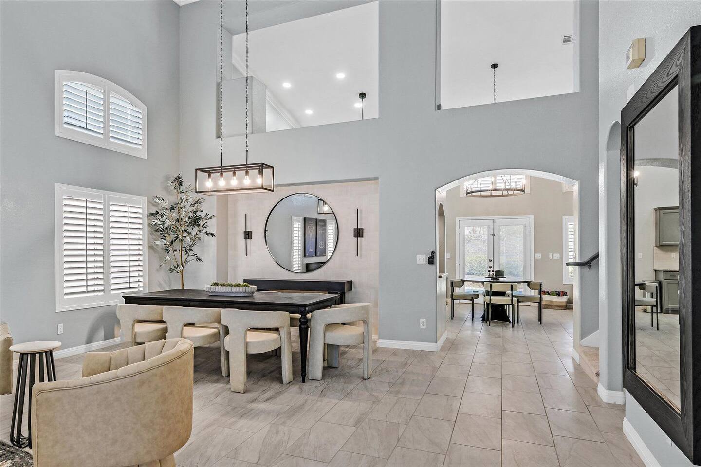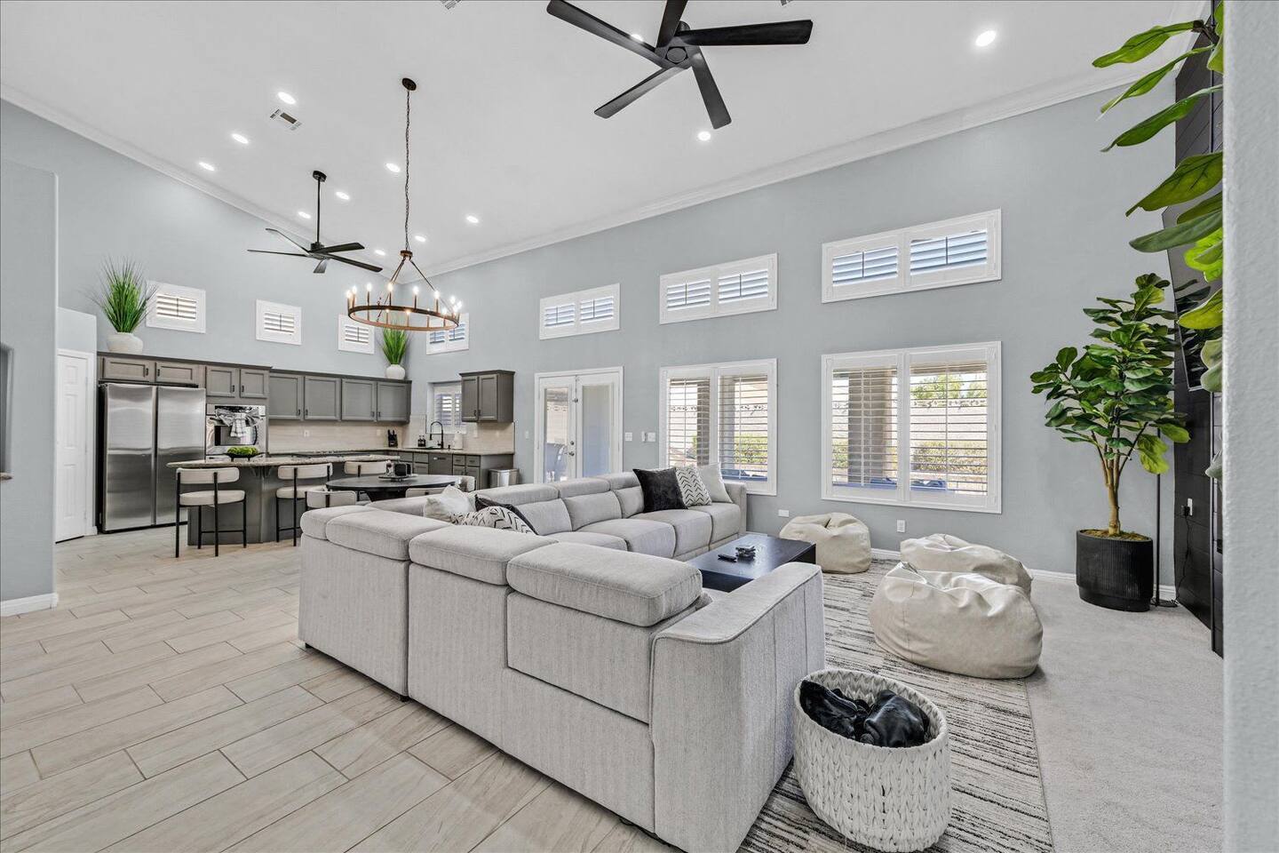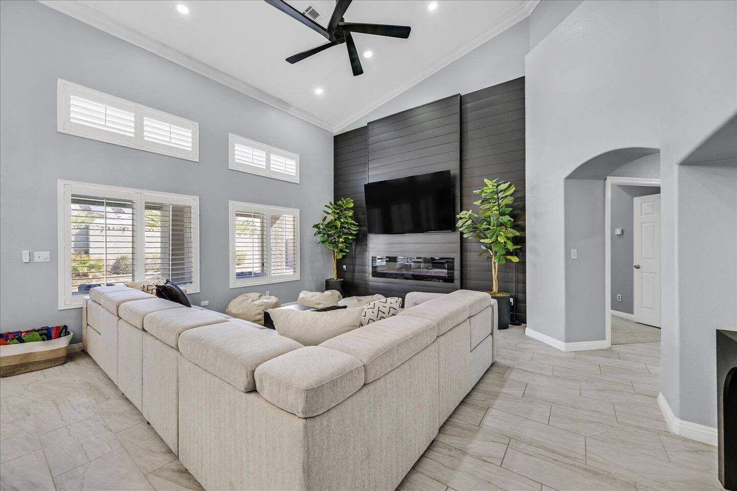 Be wowed by the vaulted ceilings when you enter this gorgeous home. This amazing 2 story home is turn-key ready and is updated with a modern look. 3 bedrooms 3 baths 3 car garage with lots of living spaces. The primary suite downstairs also with vaulted ceilings, a french door entrance, and glass French doors to the backyard. Beautiful kitchen open concept outdoor grill and a sparkling pool and spa to enjoy and relax.