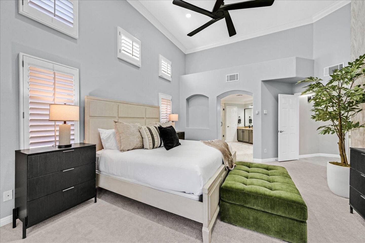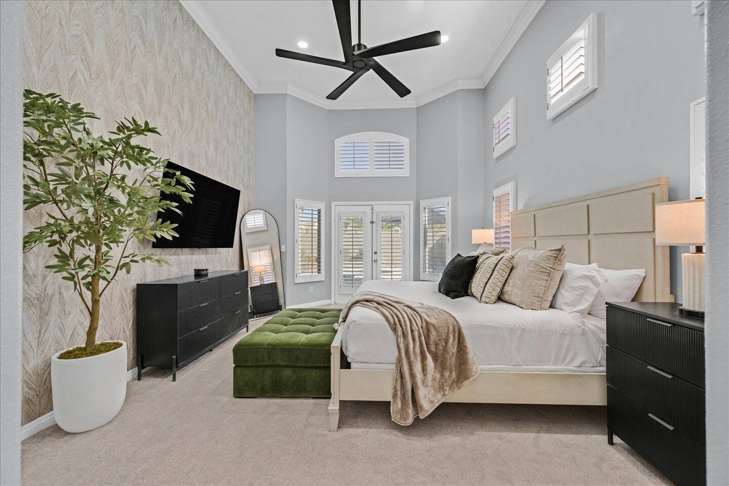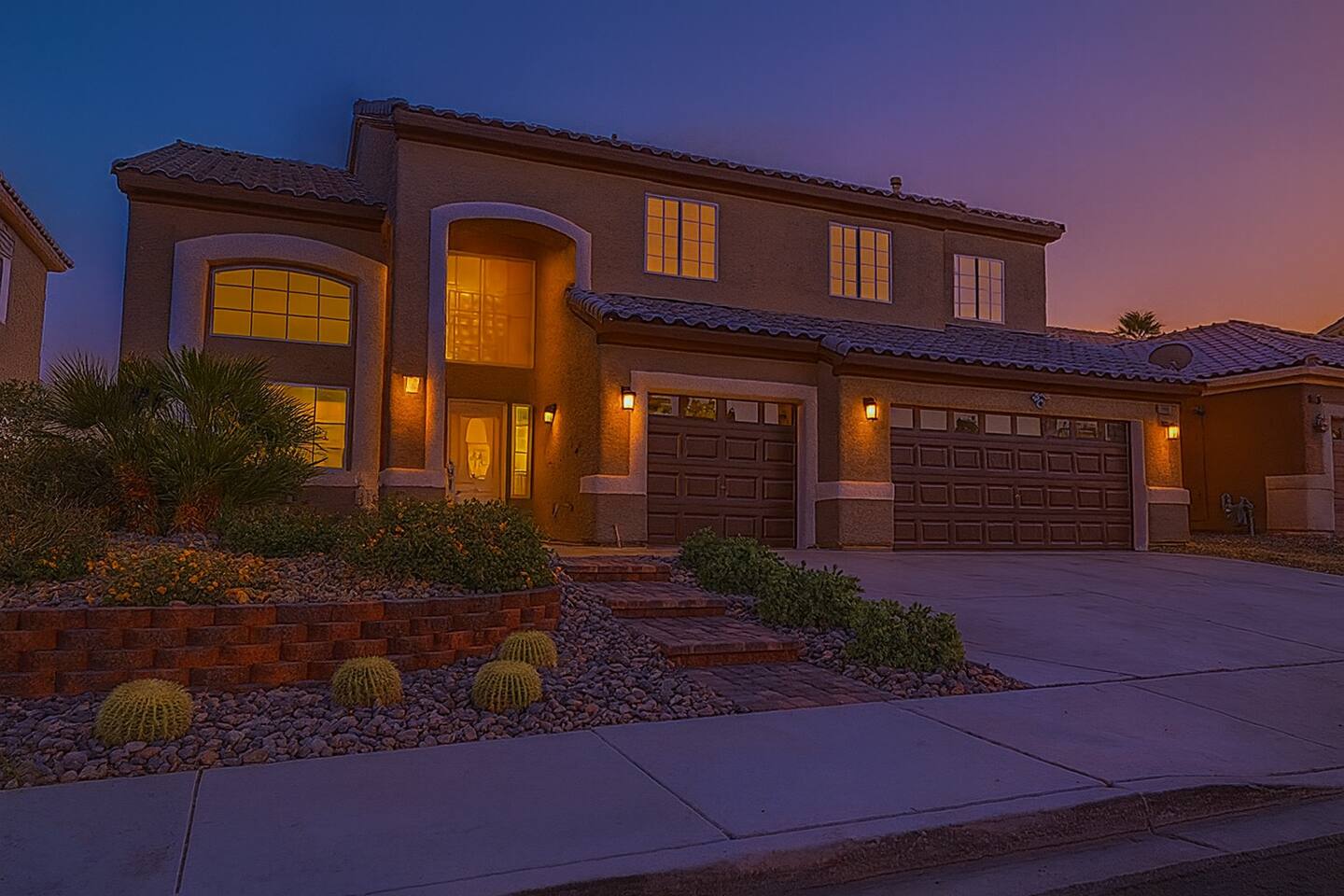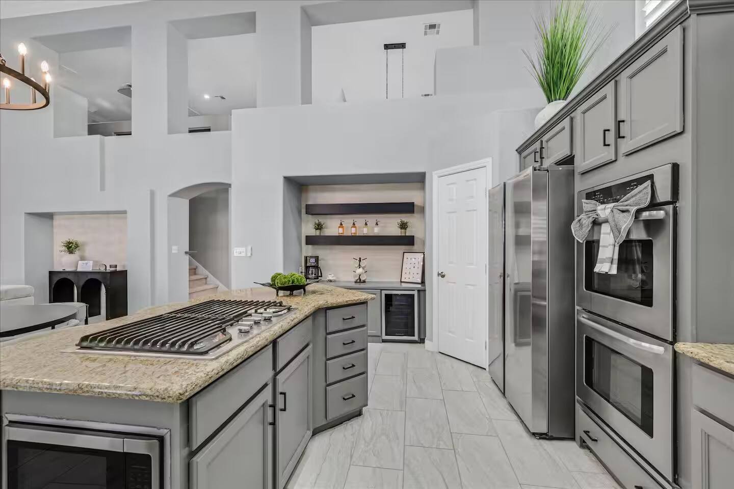 Be wowed by the vaulted ceilings when you enter this gorgeous home. This amazing 2 story home is turn-key ready and is updated with a modern look. 3 bedrooms 3 baths 3 car garage with lots of living spaces. The primary suite downstairs also with vaulted ceilings, a french door entrance, and glass French doors to the backyard. Beautiful kitchen open concept outdoor grill and a sparkling pool and spa to enjoy and relax.